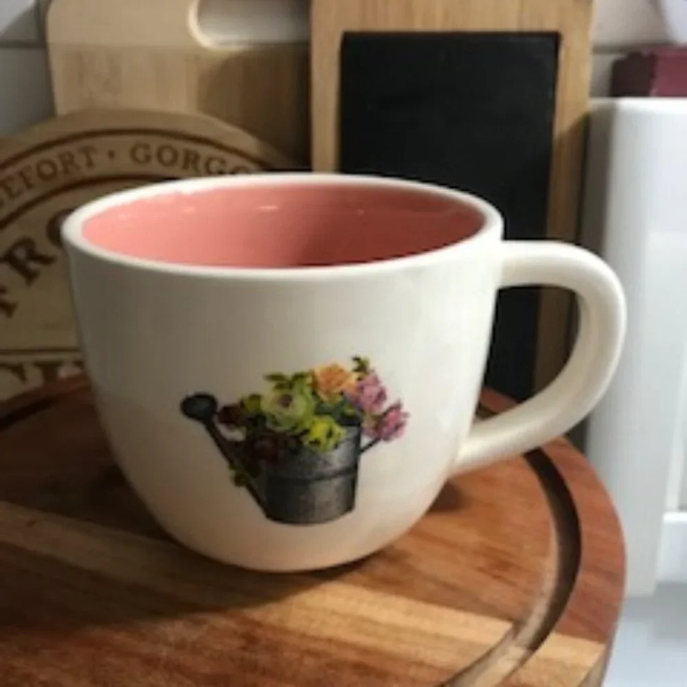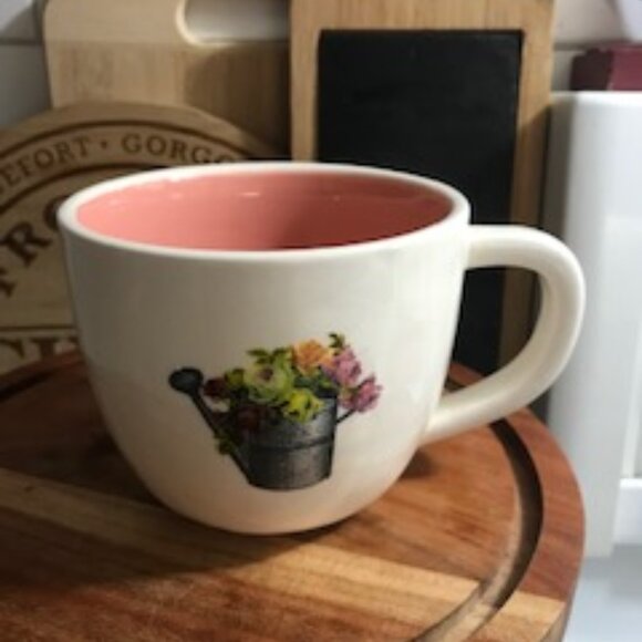 One of the old Rae Dunn mugs with just the Magenta "M" on bottom. Lovely pink colour inside - would likely use as a latte mug