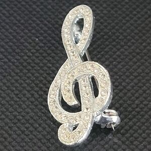 Vintage rhinestone treble clef music note brooch. Unsigned.