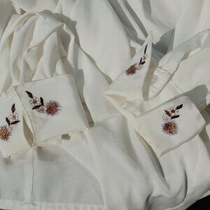 VINTAGE Romantic Collared Blouse Woman's Size 14 Floral Embroidery