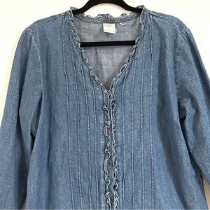VINTAGE Ruffled Denim Blouse | Size Large/ XL