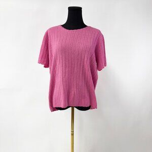 VINTAGE SCALLOP HEM AND RIBBED KNIT SHORT SLEEVE TOP
