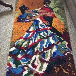 Vintage Scandinavian Multicolor Wool Tapestry Wall Hanging, Handmade Thick Wool Man and Woman Dancing Design, Large Art Tapestry Design Room Accent, Front and Back in Good Condition.