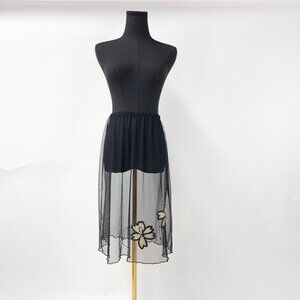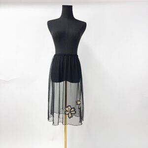 VINTAGE SHEER 90S MESH SKIRT WITH EMBROIDERY