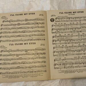 VINTAGE SHEET MUSIC-DINAH SHORE I'LL CLOSE MY EYES TRUMPET, SAXOPHONE, CLARINET