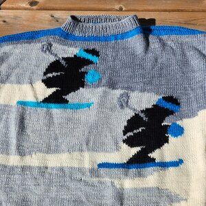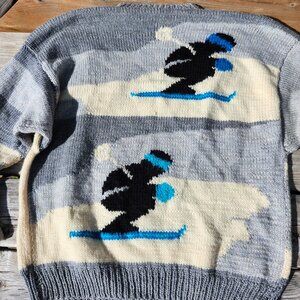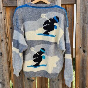 VINTAGE SKI Sweater Hand Made Men's Size Large Skiers Cross Country Wool WINTER