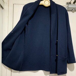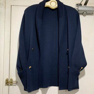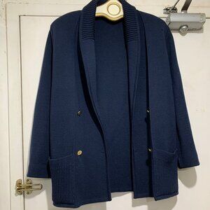 St. Croix Knitted Jacket, Lightweight, Size M, Color Blue, 100% Zephyr Wool, Front Pockets, Closure Double Breast Buttons, Shoulder Small Knit Damaged, in Good Condition, Casual Jacket, Great Look, Great Fit.