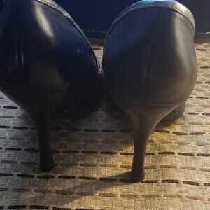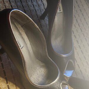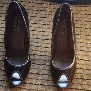VINTAGE STEVE MADDEN ANABELLE BLACK AND SILVER PEEP TOES