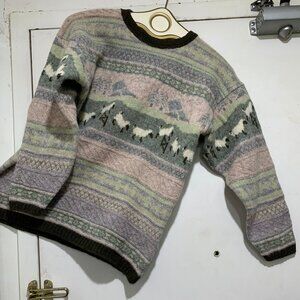 Strathspey knit Sweater, Lightweight, Vintage Size M, Fit Size S, Multicolor Knit Pattern, 100% Wool, Crewneck Pullover, made in Scotland, Good Condition: casual Sweater, Great Look, Great Fit.