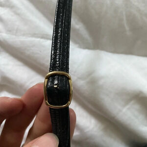 There are a couple little marks on the leather, as shown in photos. Also, the buckle piece doesn’t lie completely flat which can likely be easily fixed. (see last photo)