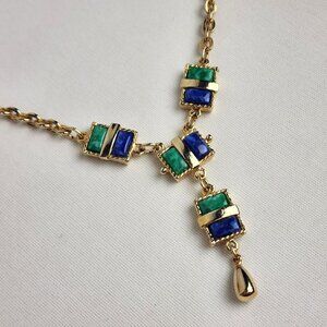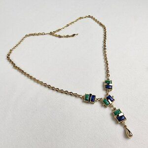 VINTAGE Sarah Coventry Blue & Green Stone Y Necklace