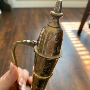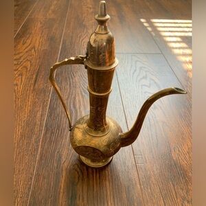 VINTAGE Sarana Brass Hand Made & Etched Teapot Pitcher Made in India 8" Tall.