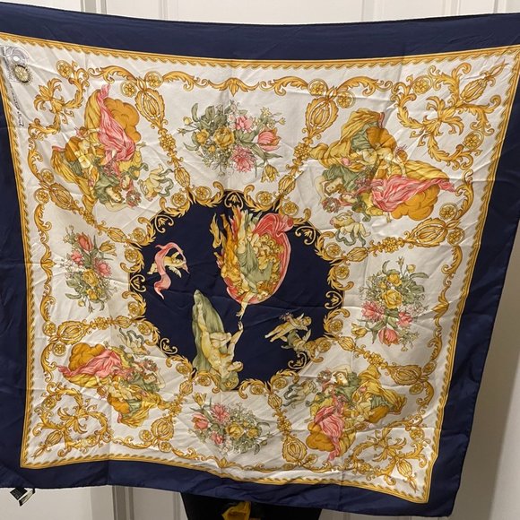 VINTAGE - Scarf with angels pattern - Made in Italy. 100% silk