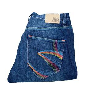VINTAGE Sean John Embroidered Jeans Size 34 'Rainbow Tidal' Blue