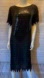Stunning vintage black sequin beaded dress with a chic 80s glam look. Features shimmering sequins on the bodice with chevron detail, short sleeves, and a unique jagged hemline. Perfect for cocktail parties, holiday events, or Gatsby/Art Deco themed occasions. Elegant, timeless, and eye-catching.
