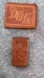 Vintage bi-fold wallet and key holder in tooled leather say "DON" on one side and have a geometric pattern on the other side. Braided whip stitching around the edges. Key holder has loops for 6 keys and does up with a snap. Wallet has room for ID and cards and bills along with a snap pocket on interior. No brand or material tag.