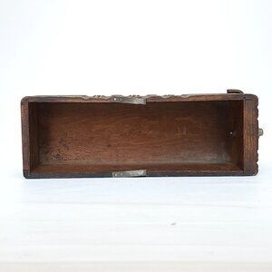 Lovely decorative hardware and carving throughout the exterior of the drawer.