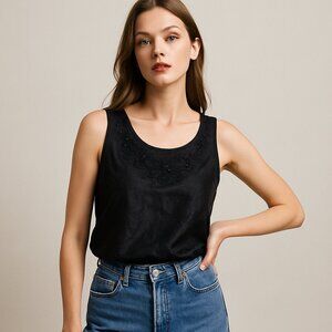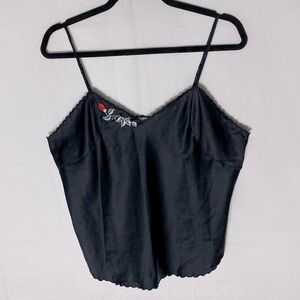 This cami has embroidered flowers and a very silky feel.