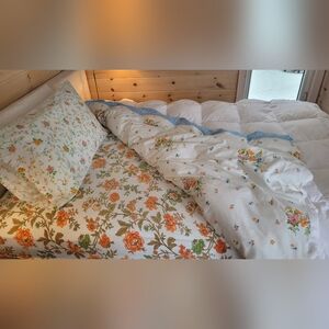 VINTAGE Single/Twin 3pc Bedding Florals Orange, Green, Blue, Yellow, Pink.