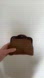Vintage small mini brown leather clutch wallet with plastic frame and kiss lock closure. Interior is fabric lined with two compartments and kiss lock central pouch for keys or change. Exterior zipper pocket. No brand or material tags.
