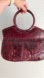 VINTAGE Snakeskin Burgundy Handbag Circular Double Handle Exotic 70's 80's Chic