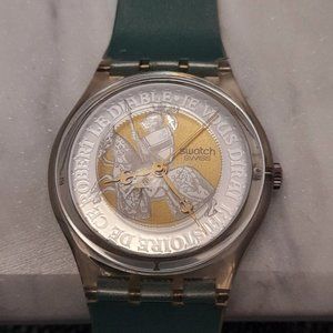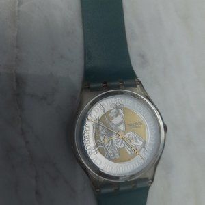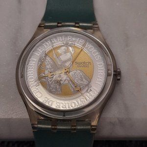 VINTAGE Swatch 1995 Prinz Eisenhetz Face with Skeleton Back and Green Plastic Strap. In working condition. Please see photos for more details.