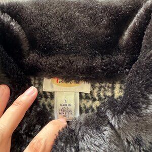 VINTAGE TALBOTS ZIPPER JACKET HERRINGBONE BLACK WHITE SIZE LARGE