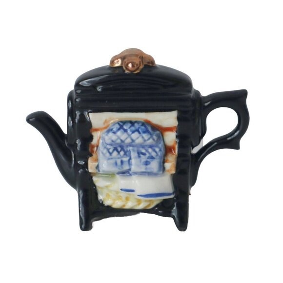 For your consideration is an intricately designed Cardew miniature teapot that is crafted in ceramic, featuring a charming wringer washstand design. A delightful addition to any collection or display, showcasing fine craftsmanship and attention to detail.