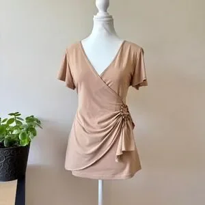 - In excellent condition - Unique going out top - Ties on the side with a ring - Tan colour - No size tags - Fits like a size M