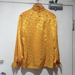 Vintage Turtleneck Blouse, No Label Fit Large, Color Yellow, Shoulder Pads, Front Trim Flap Lace, Turtleneck Small Buttons, Sleeves Cuff Buttons, Closure Back Half Buttons, in Good Condition, Relaxed Fit, Great Look, Great Fitting