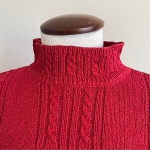 VINTAGE Talbots Women’s Size M Red Cable Knit Sweater Floral Embroidered
