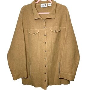 VINTAGE Tan Brown Wool Button Down Shacket Neutral Cardigan Sweater Pocket Sz 1X