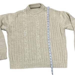 VINTAGE Tan Chunky Cable Knit Crew Neck Pullover Sweater S