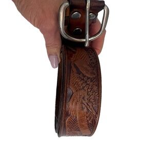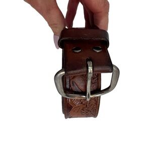 VINTAGE Top Grain Brown Leather Embossed Western Belt Size medium