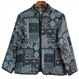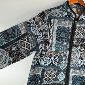 Women’s mixed blues Vintage Tradition Country Collection Patchwork Pattern Tapestry Jacket.