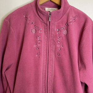 Ladies Vintage Tradition Country Collection dusty rose floral embroidered grandma zippered fleece jacket.