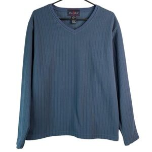 VINTAGE True North Men’s Fleece V-Neck Sweater Steel Blue Ribbed Long Sleeve S