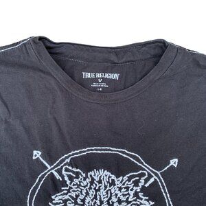 VINTAGE True Religion Shirt Wolf Embroidered Shirt Large Black