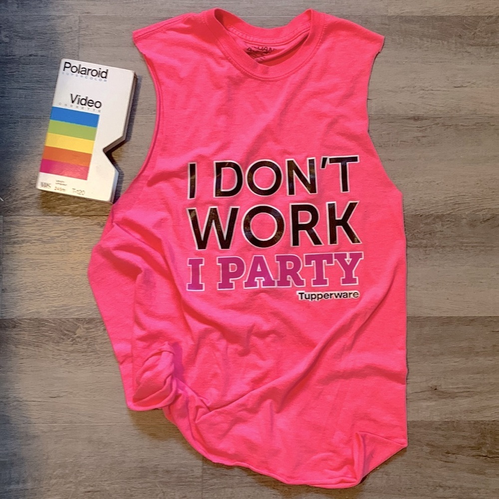 Altered - can be resized by tying at bottom on the side, back or front. So fun! Everyone remembers Tupperware parties!? So 90s. One of a kind.