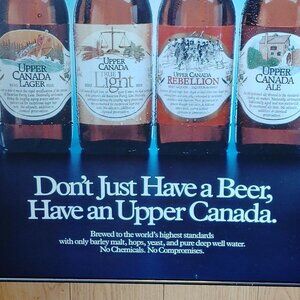 Bright poster featuring Upper Canada Lager, Upper Canada True Light, Upper Canada Rebellion, and Upper Canada Ale.