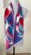Vera signed vintage scarf with pointed ends and geometric designs in blue, purple, red, pink and white. Missing material tag, this feels like polyester to me.