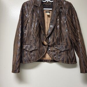 VINTAGE Vex collection brown faux leather blazer jacket Large (size 40)