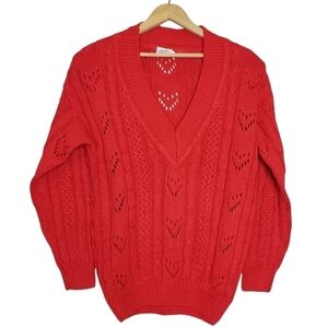 VINTAGE V-neck Valentine Red Sweater Size Large.
