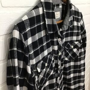 VINTAGE Weatherproof 100% cotton XL flannel plaid button down shirt black white