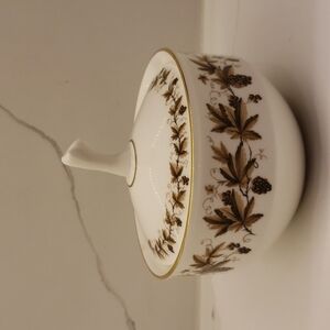 #876 Vintage Wedgwood Autumn Vine Sugar Bowl Fine Bone China England 3.75"diam x 4"h with lid on