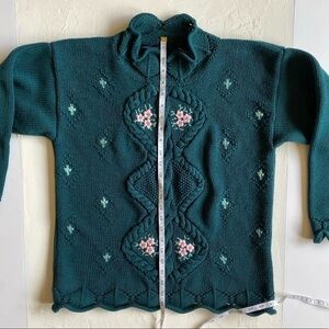 VINTAGE Weekend Edition Hand Knitted Green Floral Sweater