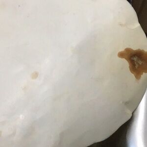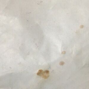 Missing instructions. Stains on liner. A few scuffs on pan