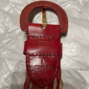 VINTAGE Women's Red Leather and Beige Cotton Braided Belt
