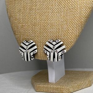 VINTAGE Women's White Round Gemstone Clip-On Earrings