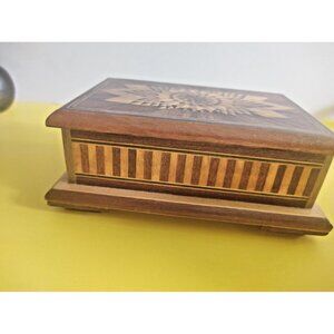 VINTAGE Wooden Decorative Box Inlaid jewelry box felt insert 6.5" x 4.75"