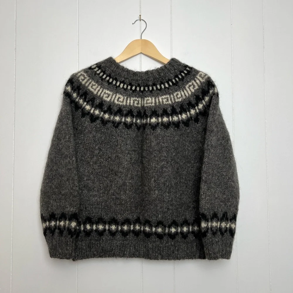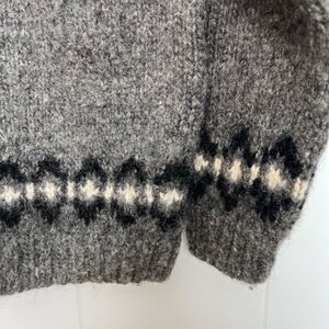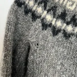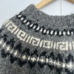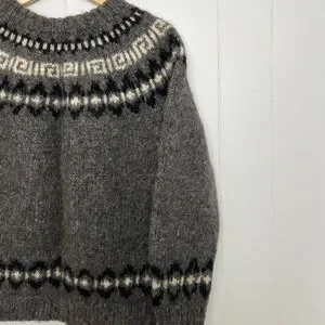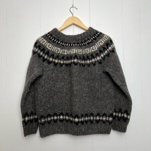 Beautiful vintage thick knit sweater in dark grey, cream, and black - very warm